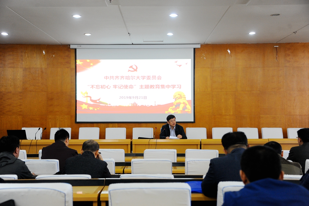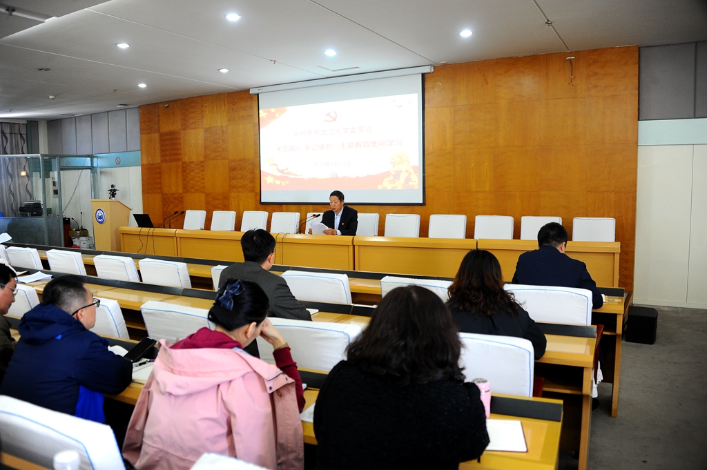 9月21日上午,全校機關(guān)各部門以及教輔單位副處級以上黨員干部在西區(qū)主樓七樓學(xué)術(shù)報告廳開展“不忘初心、牢記使命”主題教育集中學(xué)習(xí)。校黨委副書記張文治出席學(xué)習(xí)會。