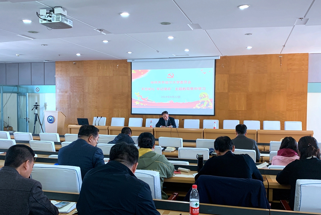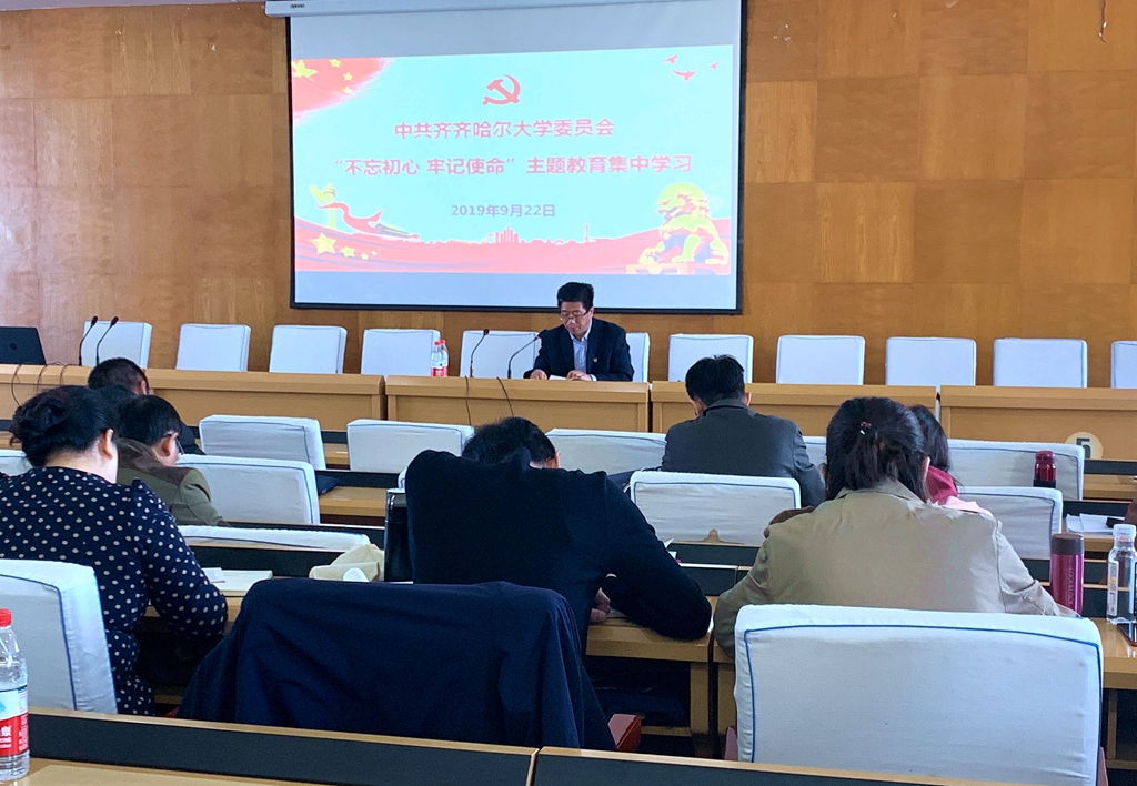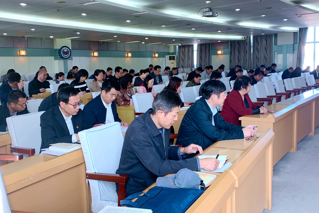 9月22日上午,全校機關各部門以及教輔單位副處級以上黨員干部在西區(qū)主樓七樓學術報告廳開展“不忘初心、牢記使命”主題教育集中學習。校黨委副書記張文治出席學習會。