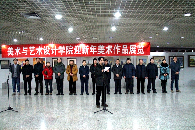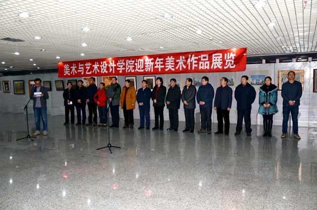“美術(shù)與藝術(shù)設(shè)計(jì)學(xué)院迎新年美術(shù)作品展覽”由美術(shù)與藝術(shù)設(shè)計(jì)學(xué)院副院長范鐵明教授主持。開幕儀式后,領(lǐng)導(dǎo)、嘉賓與師生觀看展覽并合影留念。