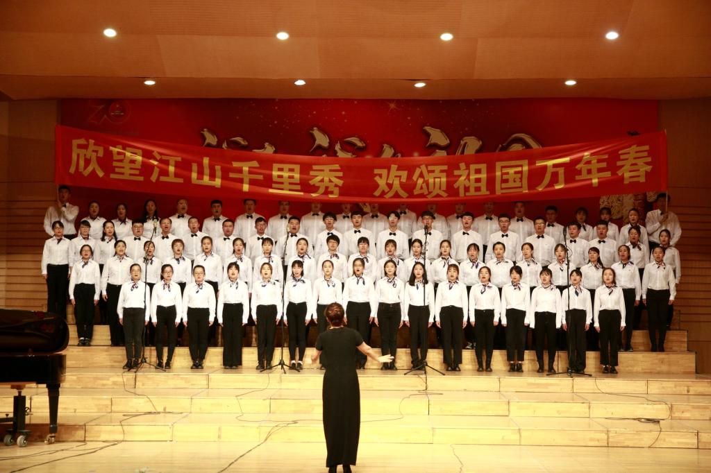 最后,活動現(xiàn)場全體人員起立,齊唱《我和我的祖國》,合唱比賽在熱烈的氣氛中圓滿結(jié)束。