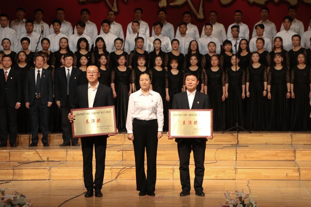 放歌新時代,筑夢新征程。在新中國70華誕即將來臨之際,為營造團結(jié)奮進、熱烈喜慶的氛圍,將學(xué)?!安煌跣?、牢記使命”主題教育與慶祝新中國成立70周年系列活動結(jié)合起來。9月25日,我校在音樂廳隆重舉行了慶祝新中國成立70周年“我和我的祖國”師生大合唱比賽。校領(lǐng)導(dǎo)陳桂芝、齊宏偉、張文治、王剛、李英杰、姜國慶、張樹軍、呂厚均、陶佰睿,黨委常委、宣傳統(tǒng)戰(zhàn)部長王曉梅,黨委常委、組織部長馬文輝出席活動并為獲獎單位頒獎。