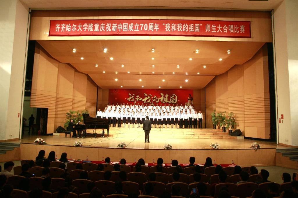 通過舉辦“我和我的祖國”師生大合唱比賽,充分展示齊大人熱愛祖國、團結(jié)向上、奮發(fā)進取的精神風(fēng)貌,進一步激發(fā)了全校師生員工的愛國熱情。廣大教職員工一致表示,將以習(xí)近平新時代中國特色社會主義思想和黨的十九大精神為指引,牢固樹立“四個意識”,堅定“四個自信”,做到“兩個維護”,堅守教育報國初心,牢記立德樹人使命,以培養(yǎng)擔(dān)當(dāng)民族復(fù)興大任的時代新人為己任,做黨和人民滿意的“四有”好老師,為實現(xiàn)中華民族偉大復(fù)興的中國夢做出新的更大的貢獻。