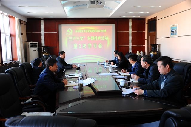 10月20日上午,學(xué)校舉行黨委理論學(xué)習(xí)中心組學(xué)習(xí)會(huì)暨“三嚴(yán)三實(shí)”專題教育活動(dòng)第三次學(xué)習(xí)會(huì)。校黨委書記李海紅,黨委副書記蓋元臣,黨委常委、副校長鄧啟剛,黨委常委、副校長王剛,黨委常委、副校長李英杰,黨委常委、工會(huì)主席李敏義,黨委常委、組織部長齊宏偉參加了會(huì)議。會(huì)議由校黨委書記李海紅主持。本次會(huì)議主要內(nèi)容是以先進(jìn)典型為標(biāo)桿、以反面典型為鏡鑒,舉一反三、檢身正己,自覺嚴(yán)守黨的政治紀(jì)律和政治規(guī)矩,不斷把“三嚴(yán)三實(shí)”專題教育引向深入。