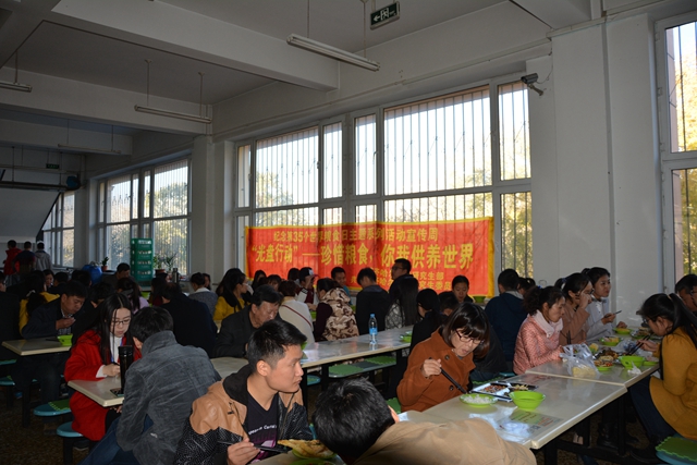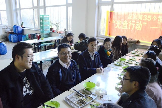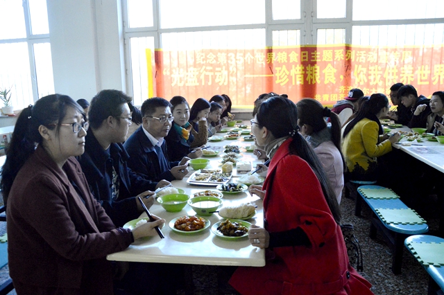 10月19日中午,研究生團委在東區(qū)食堂組織研究生開展 “光盤行動”活動,號召同學們樹立“節(jié)約資源,愛惜糧食”節(jié)約環(huán)保生活觀。該活動得到了校領(lǐng)導的高度重視與大力支持。校黨委書記李海紅,校黨委副書記蓋元臣,校黨委常委、副校長鄧啟剛、研究生部黨委書記滕永富、校團委副書記蘇醒,研究生部副主任田麗軍、研究生部團委書記張哲等與研究生同學一起到窗口刷卡打飯,共進午餐,踐行“光盤行動”,傳遞節(jié)約糧食的正能量。