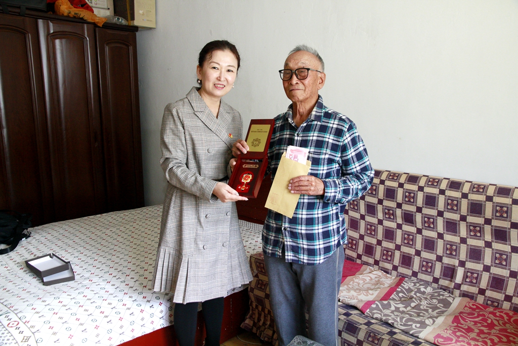 在慶祝新中國成立70周年之際,9月29日上午,校長陳桂芝、校黨委副書記齊宏偉、校黨委副書記張文治分別走訪慰問了我校離休老同志張秀才、任海平、陳國春,向他們致以崇高敬意和親切慰問,并轉送了由中共中央、國務院、中央軍委頒發(fā)的“中華人民共和國成立70周年紀念章”,還向他們轉交了一千元慰問金。