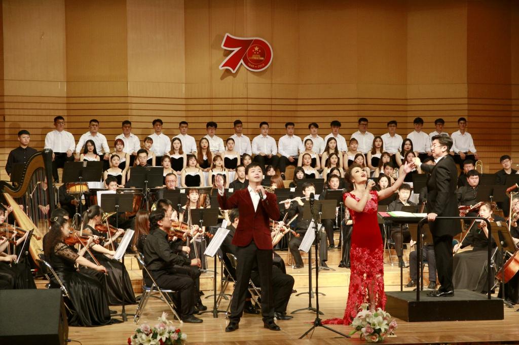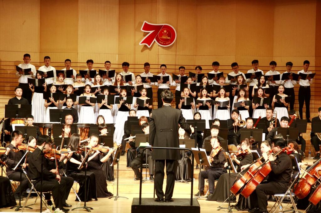 奏響時代樂章,歌唱盛世中國。為熱烈慶祝中華人民共和國成立70周年,9月29日下午,學校在音樂廳隆重舉行了慶祝新中國成立70周年交響音樂會。