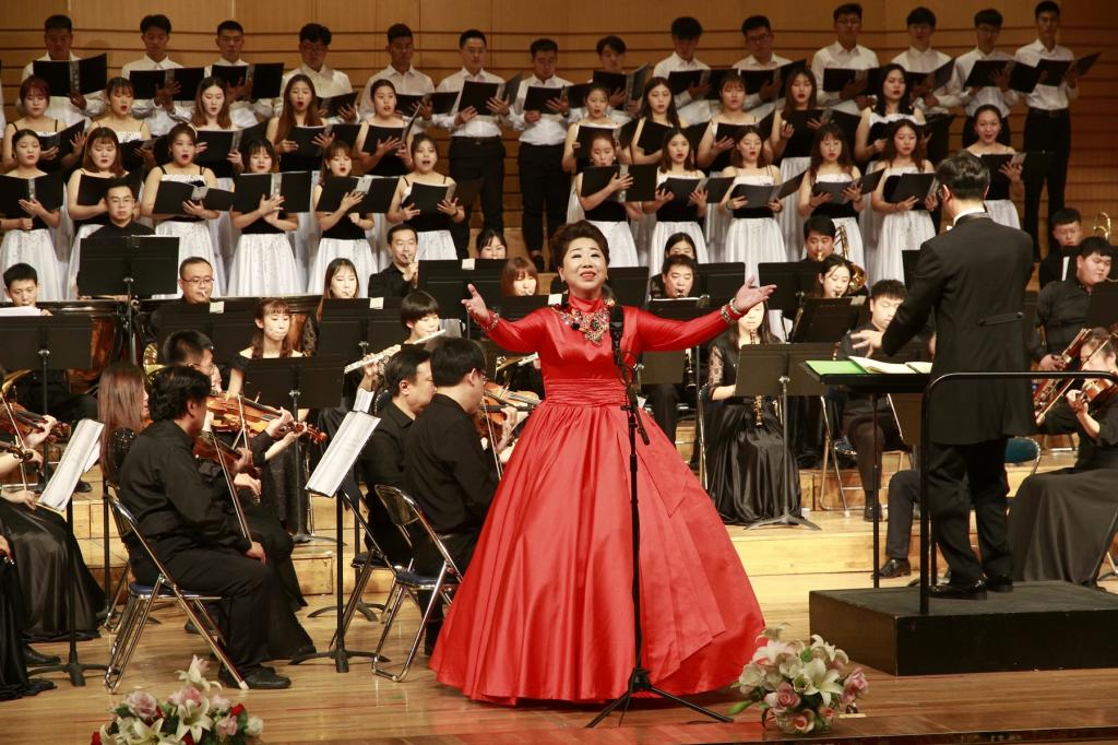 由音樂與舞蹈學院副院長殷進良演唱的經典愛國歌曲《祖國萬歲》,以深情傾訴的抒情特質,清新真摯的旋律語言,表達了對祖國、對中華民族的深厚情感,唱出了億萬中華兒女對祖國母親的赤誠大愛。