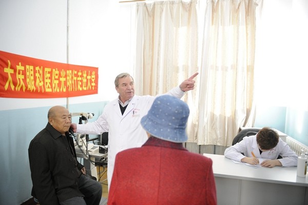 義診活動(dòng)得到了大慶眼科醫(yī)院領(lǐng)導(dǎo)和齊齊哈爾大學(xué)領(lǐng)導(dǎo)的重視和支持,大慶眼科醫(yī)院派出了兩組專家隊(duì)伍,其中包括來(lái)自俄羅斯的眼科專家尼古拉?杜申和伊格里?尤里薩維奇。