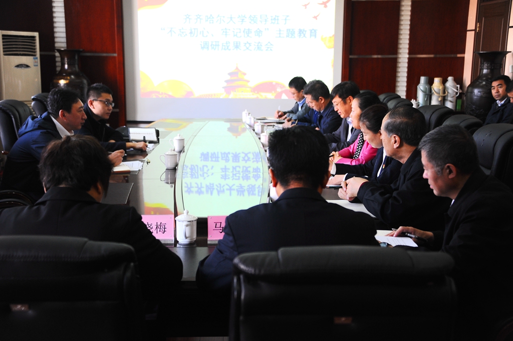 按照省委“不忘初心、牢記使命”主題教育的安排部署,10月18日上午,齊齊哈爾大學(xué)領(lǐng)導(dǎo)班子“不忘初心、牢記使命”主題教育調(diào)研成果交流會在辦公樓504會議室召開。省委第一巡回指導(dǎo)組成員張福林、袁星野到會指導(dǎo)。校黨委班子成員參加會議,相關(guān)部門負(fù)責(zé)人列席會議。會議由校黨委副書記、校長陳桂芝主持。