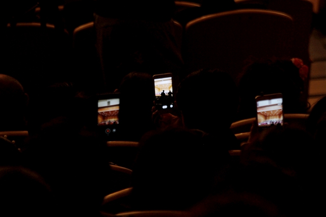 現(xiàn)場觀眾紛紛拿出手機拍攝下精彩的演出瞬間,通過微信、微博、QQ等等新媒體發(fā)到朋友圈“曬美好”,分享音樂慶典的幸福和喜悅。