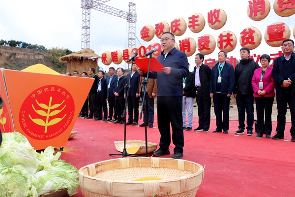 10月16日,副校長呂厚均、科研處處長荊濤與郭成宇教授在第39個世界糧食日和全國第6個扶貧日到來之際,應(yīng)邀參加了在陜西省米脂縣柳家坬村舉辦的,米脂縣2019年消費扶貧暨中國農(nóng)民豐收節(jié)。