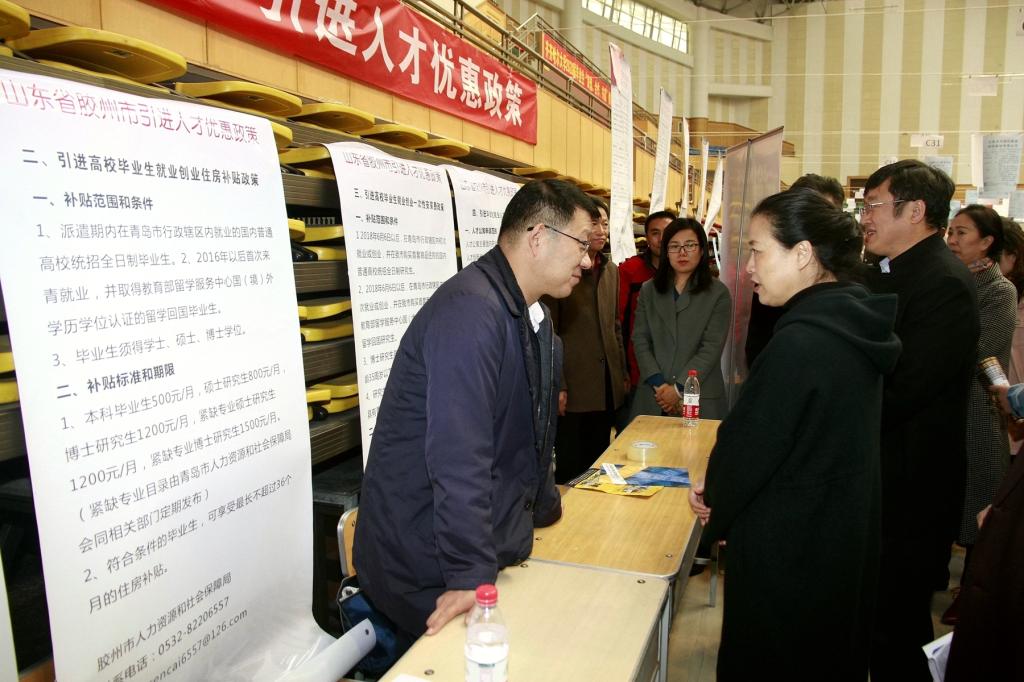 校黨委書記、校長陳桂芝和校黨委副書記張文治深入到供需見面會現(xiàn)場,聽取了招生就業(yè)處相關(guān)負(fù)責(zé)人關(guān)于2020屆畢業(yè)生的擇業(yè)就業(yè)情況的匯報,并與中國十九冶集團、山東省膠州市人力資源和社會保障局等來校招聘人才的用人單位進行了交流,了解用人需求,聽取用人單位對人才培養(yǎng)、專業(yè)建設(shè)、就業(yè)服務(wù)等方面的建議,并與畢業(yè)生現(xiàn)場交流,針對同學(xué)們的就業(yè)困惑給予幫助和建議。陳桂芝鼓勵同學(xué)們認(rèn)清就業(yè)形勢,堅定就業(yè)信心;明確就業(yè)目標(biāo),放平就業(yè)心態(tài);拓寬就業(yè)渠道,積極主動就業(yè)。陳桂芝希望同學(xué)們抓住機遇、迎接挑戰(zhàn),緊跟時代發(fā)展要求不斷完善自我,在未來取得優(yōu)異成績。