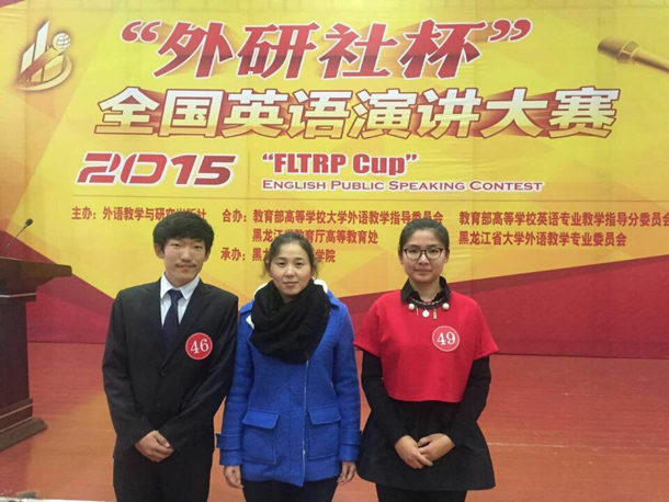 10月31日,2015年“外研社杯”全國英語演講大賽黑龍江復(fù)賽在黑龍江外國語學(xué)院舉行,來自黑龍江省37所高校的50名選手同臺競技,經(jīng)過定題演講、即興演講等環(huán)節(jié)的激烈角逐,我校學(xué)生化工151侯莉莉脫穎而出榮獲一等獎, 輕化154劉海龍榮獲三等獎。這也是我校學(xué)子數(shù)年來在演講比賽上首次收獲黑龍江省一等獎,成績喜人,可喜可賀!