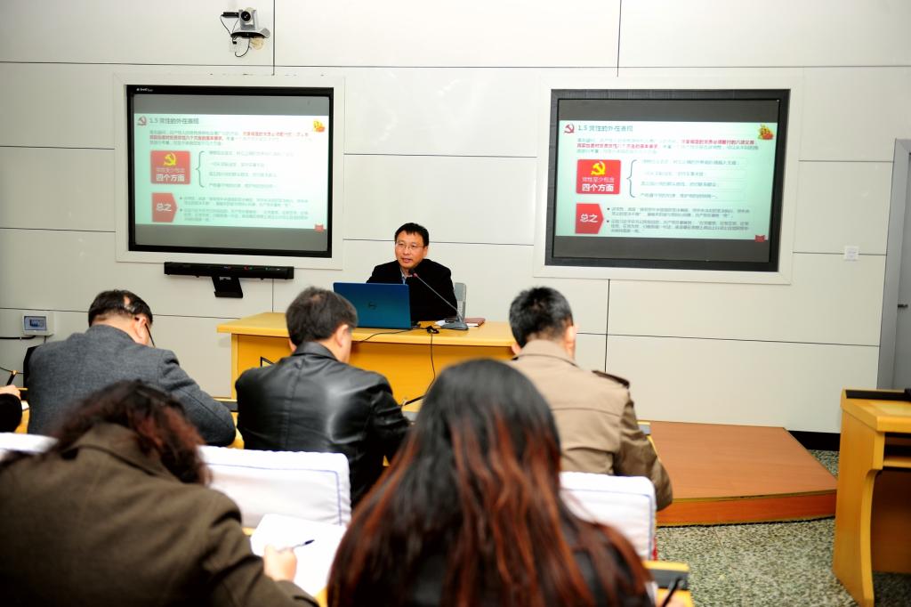 10月29日上午,校黨委常委、副校長王剛在建筑與土木工程學院3號教學樓107教室為后勤管理處全體黨員、建筑與土木工程學院及通信與電子工程學院的院領導及支部書記做了題為《學深悟透新思想 以新?lián)斝伦鳛橥苿邮聵I(yè)發(fā)展》的專題黨課。王剛從重溫歷史記憶,刻骨銘記共產(chǎn)黨人奮斗歷程;緊跟時代步伐,學深悟透習近平新時代中國特色社會主義思想;把握主題教育,深入踐行守初心、擔使命總要求;轉化教育成果,扎實推進學校教育事業(yè)發(fā)展等四個方面帶領全體黨員回顧和重溫了中國共產(chǎn)黨人奮斗的光輝歷程,闡明了如何學習貫徹落實習近平新時代中國特色社會主義思想,怎樣踐行中國共產(chǎn)黨人的初心和使命。同時,他還根據(jù)近期“不忘初心、牢記使命”主題教育的學習教育、調(diào)查研究、檢視問題和整改落實情況,結合個人分管工作,與全體黨員交流了學校后勤服務保障工作存在的困難和問題、通過主題教育取得的階段性成果以及探索開創(chuàng)工作新局面的路徑和舉措,與全體黨員共同探討了如何落實好立德樹人根本任務。