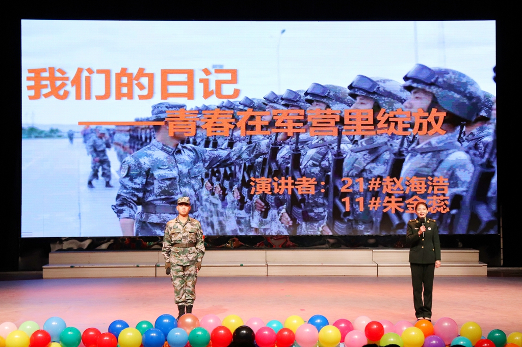 由舞蹈171班帶來的舞蹈劇《奮斗吧中華兒女》展現(xiàn)的則是一群農(nóng)民工的進(jìn)城之路,他們懷著對大城市的憧憬與期盼踏上了旅程,在陌生的城市努力拼搏,用自己的一滴滴汗水澆灌出屬于自己的那一方天地?!段覀兊娜沼?青春在軍營里綻放》是由趙海浩、朱金蕊兩位退伍大學(xué)生兵講述的他們的青春故事。他們用自己的軍旅故事展現(xiàn)了當(dāng)代有理想、有抱負(fù)的大學(xué)生的青春追求,激勵著一批批齊大學(xué)子赴身軍旅,報效祖國。最后劉舒蕾,王世宇的一首《天耀中華》講出了我們每位中華兒女對祖國的深沉愛意,為觀眾上了一堂生動的愛國主義教育課,也為演出畫上了圓滿的句號。