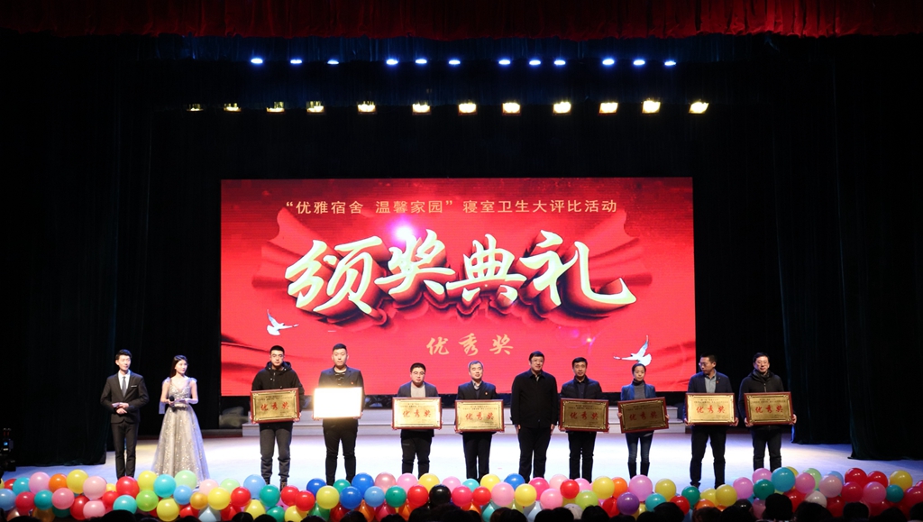 晚會期間,同時舉行了第六屆“寢室文化節(jié)”系列活動頒獎儀式?!拔沂菍W(xué)子貼心人”管理員崗位技能大賽優(yōu)勝者、“我奉獻(xiàn),我快樂”第二屆“最美公寓人”評選出的“最美公寓人”、“建小家,展大情懷”愛我國防演講比賽獲獎選手、“最強(qiáng)寢室,因你而靚”學(xué)生黨員示范寢室先進(jìn)事跡評選獲獎選手代表、“優(yōu)雅宿舍,溫馨家園”寢室衛(wèi)生大評比活動評選獲優(yōu)秀獎的學(xué)院受到表彰,出席本次活動的嘉賓分別為各獲獎代表頒發(fā)獲獎證書或獎牌。