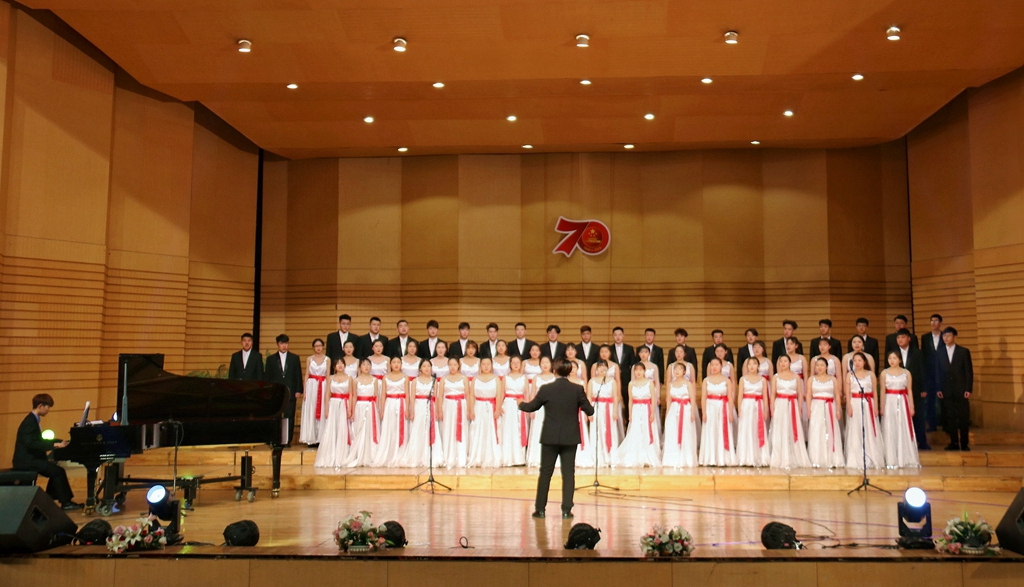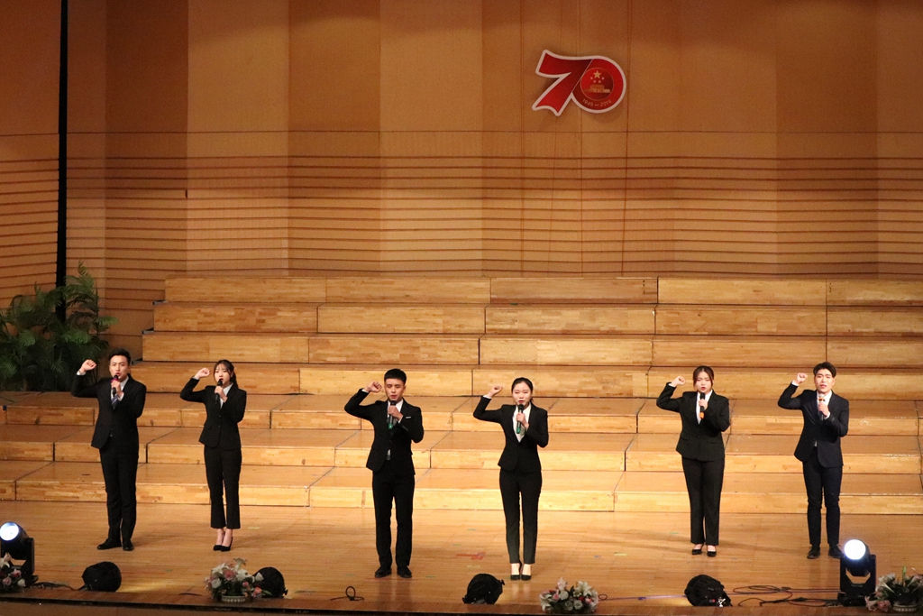 活動最終在全場人員手持國旗,齊唱歌曲《我和我的祖國》中結(jié)束。