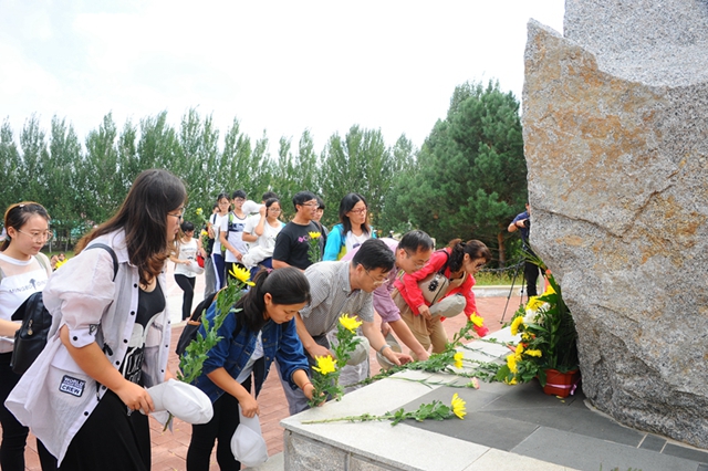 校黨委副書(shū)記蓋元臣帶領(lǐng)師生面向江橋抗戰(zhàn)紀(jì)念碑,向江橋抗戰(zhàn)中血灑嫩江畔的將士們,向所有在抗日時(shí)期犧牲和殉難的同胞們,向?yàn)橹С趾驮袊?guó)人民抗日戰(zhàn)爭(zhēng)做出貢獻(xiàn)的國(guó)際友人們?nèi)瞎?。儀式結(jié)束后,師生參觀(guān)了江橋抗戰(zhàn)紀(jì)念館,重溫江橋抗戰(zhàn)的悲壯歷史,緬懷抗日英烈的豐功偉績(jī),接受精神的洗禮。