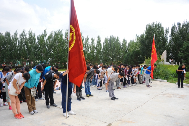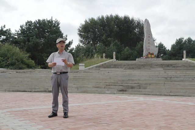 11:00,師生們到達(dá)泰來(lái)縣江橋鎮(zhèn)。校黨委副書(shū)記蓋元臣在祭拜英烈活動(dòng)前講話(huà),闡明主題活動(dòng)的教育意義和歷史啟思,號(hào)召師生們紀(jì)念中國(guó)人民抗日戰(zhàn)爭(zhēng)暨世界反法西斯戰(zhàn)爭(zhēng)勝利70周年,就是要銘記歷史、緬懷先烈、珍愛(ài)和平、開(kāi)創(chuàng)未來(lái)。