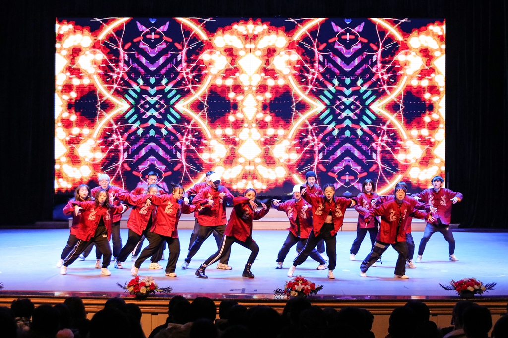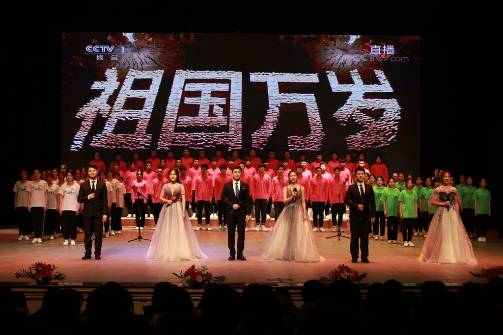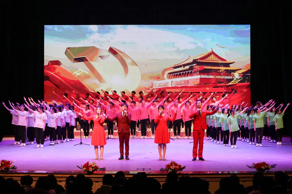 文藝匯演分為盛世耀中華、青春心向黨和奮進(jìn)新時(shí)代三個篇章?;瘜W(xué)與化學(xué)工程學(xué)院55名青年學(xué)生的手語合唱表演《國家》拉開了文藝匯演的序幕;文學(xué)與歷史文化學(xué)院(新聞傳播學(xué)院)的情景詩朗誦《偉大的覺醒》,8名學(xué)生分別扮演不同年代的人,從不同的視角來表達(dá)他們對偉大新時(shí)代的贊頌;各校級社團(tuán)分別進(jìn)行了合唱、街舞、書法、武術(shù)、雙截棍等形式多樣的表演,表現(xiàn)了齊大青年昂揚(yáng)向上的精神風(fēng)貌;社團(tuán)指導(dǎo)教師代表江富闊老師和四名同學(xué)共同演唱了由他作曲、姜慧博老師作詞的《請到齊大來》,表達(dá)了齊大師生的熱情;校級學(xué)生組織100名團(tuán)學(xué)骨干的原創(chuàng)詩朗誦《新時(shí)代中國青年新時(shí)代齊大青年》將演出推向高潮,聲音洪亮、字句鏗鏘,表達(dá)了齊大青年深厚的愛國情懷和愛校情意;演出最后,由校院兩級學(xué)生干部代表和青年學(xué)生代表領(lǐng)唱的歌曲《不忘初心》,表達(dá)了齊大青年不忘跟黨初心,牢記青春使命的信心和決心。