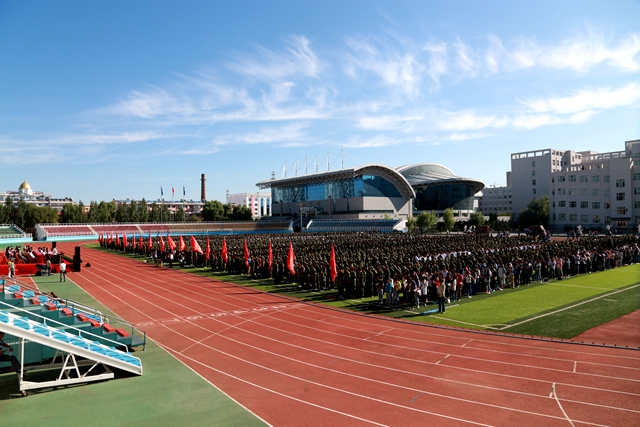 舉國同慶勝利日珍愛和平誓要富強,齊大喜迎新同學再接再厲再創(chuàng)榮光。在全國各界隆重紀念抗日戰(zhàn)爭暨世界反法西斯戰(zhàn)爭勝利70周年的重要時刻,在學校高水平大學建設全面推進之時,2015級新同學帶著對理想和知識的渴求、帶著父母親人的厚望,從祖國四面八方來到蓬勃發(fā)展的齊齊哈爾大學,融入到這個充滿生機與活力的大學校園,開啟了他們追求學業(yè)夢想的新征程。美麗齊大因為他們的到來而更加精彩,齊大的明天也一定會因他們的成長進步更加美麗。
