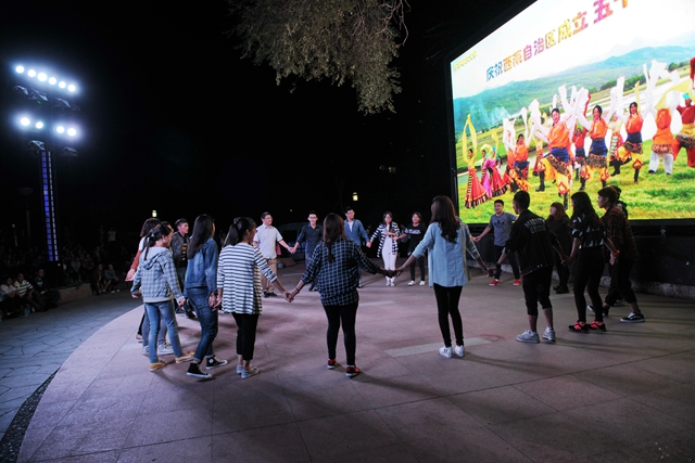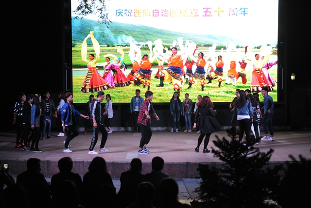 2015年9月西藏自治區(qū)迎來成立50周年。9月2日18:30,我校藏族學(xué)生與其他各族師生一起在三致廣場(chǎng)載歌載舞,縱情歌唱,熱烈慶祝西藏自治區(qū)成立50周年。