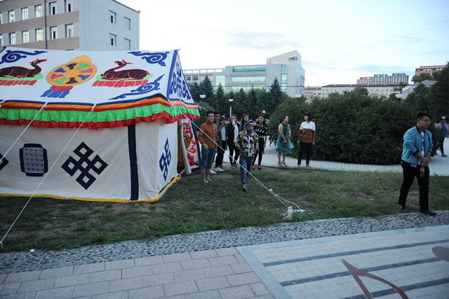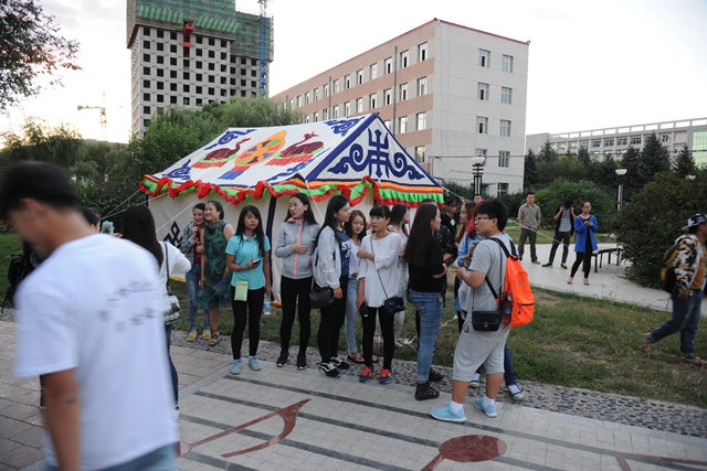 在三致廣場(chǎng)的草地旁,藏族同學(xué)親手搭起了由李海紅書記不遠(yuǎn)萬里從西藏帶回的一頂藏式帳篷。鮮明的民族特色和藏式風(fēng)情吸引了許多同學(xué)的關(guān)注的目光。一些同學(xué)紛紛走近帳篷,與之合影留念,切身感受藏族民俗文化。