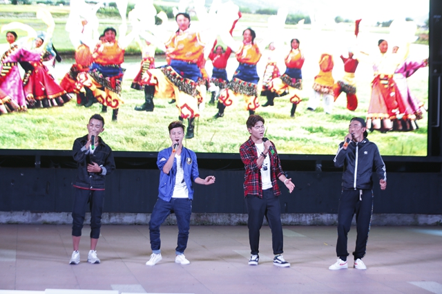 校學(xué)生會(huì)的學(xué)生干部集體表演了合唱《幸福拍手歌》,黨曲卓瑪、曲登尼瑪?shù)韧瑢W(xué)以及音樂與舞蹈學(xué)院青年教師陳丹丹等演唱了《珠穆朗瑪》、《回到拉薩》等歌曲以及民族舞蹈等20多個(gè)豐富多彩的文藝節(jié)目。我校路文明教授兄弟發(fā)明了丁笛。他們的學(xué)生用丁笛合奏了一曲《天路》,音韻飽滿,情摯深深,為西藏人民祈福吉祥安康。