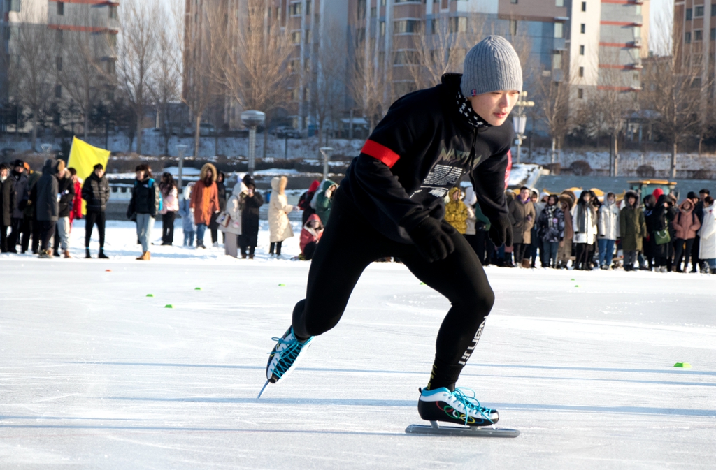 本屆冰上運動會單項比賽采用國家體育總局冬運中心審定的最新的《速度滑冰競賽規(guī)則》,設置了單項比賽“男子500米、女子500米速滑”競賽項目,設置了“定時快撿小布球20個”、“纖夫拉爬犁50米”、“繞樁蛇形滑接力”等游戲項目,吸引了眾多同學的熱情參與,充分體現(xiàn)了冰上運動會的群眾性和廣泛性。