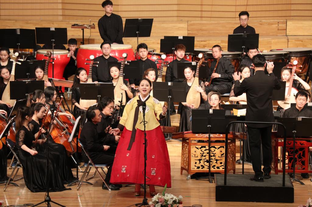 由音樂與舞蹈學院殷進良、陳丹丹、張白雪、朱艷斌、孫博等老師先后帶來的東北少數(shù)民族民歌聯(lián)唱,贏得了現(xiàn)場觀眾的陣陣掌聲。男生獨唱《烏蘇里船歌》以深情的旋律表達了在烏蘇里江邊生活的那種幸福和歡樂;女生獨唱《莫尼山》曲調(diào)悠然,將莫尼山的美好風光展現(xiàn)的淋漓盡致,展現(xiàn)作為莫尼山人的驕傲;曲調(diào)帶著淡淡的憂傷,又充滿期待的《新阿里郎》是對美好愛情的詮釋;《莫日根姐姐》用默契的雙人搭檔的形式,以歡快明麗的旋律,唱出了東北民樂悠遠深長的意境。