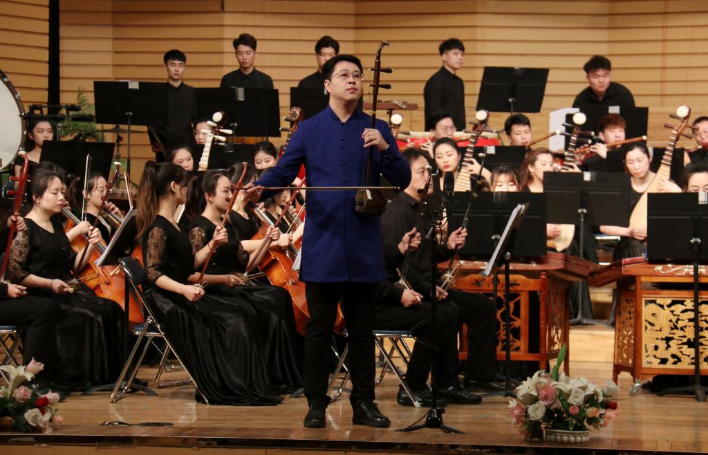 校民族管弦樂團演奏的《紅高粱》,是由作曲家蘭添根據(jù)電視連續(xù)劇《紅高粱》的主題曲改編而成,樂曲充分表達了劇中人物的復(fù)雜情感。曲調(diào)時而激昂,似怒吼。時而輕柔,似低語。用音樂詮釋了生命的頑強,同時預(yù)示著生命的崛起,抗擊的繼續(xù)。