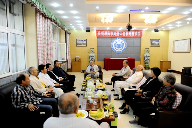 9月10日,我校領(lǐng)導(dǎo)蓋元臣、鄭喜群與離退休老教師代表在工會(huì)茶室舉行座談會(huì),向他們致以節(jié)日的慰問(wèn)。座談會(huì)上,茶香芬芳,沁人心脾,與會(huì)的離退休老教師、老專(zhuān)家、老同志一一發(fā)言,暢談一生從教為師感受,為學(xué)校改革、建設(shè)和發(fā)展建言獻(xiàn)策,座談會(huì)不時(shí)響起歡樂(lè)的笑聲,充滿了濃濃的愛(ài)教、愛(ài)師、愛(ài)校之情。