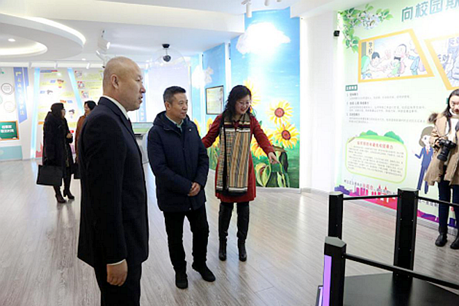 李英杰與李雪峰共同為“齊齊哈爾大學(xué)教學(xué)實踐基地”和“齊齊哈爾大學(xué)未成年人心理援助矯護(hù)中心”揭牌,并和參會人員共同參觀富??h檢察院未成年人檢察工作區(qū)。