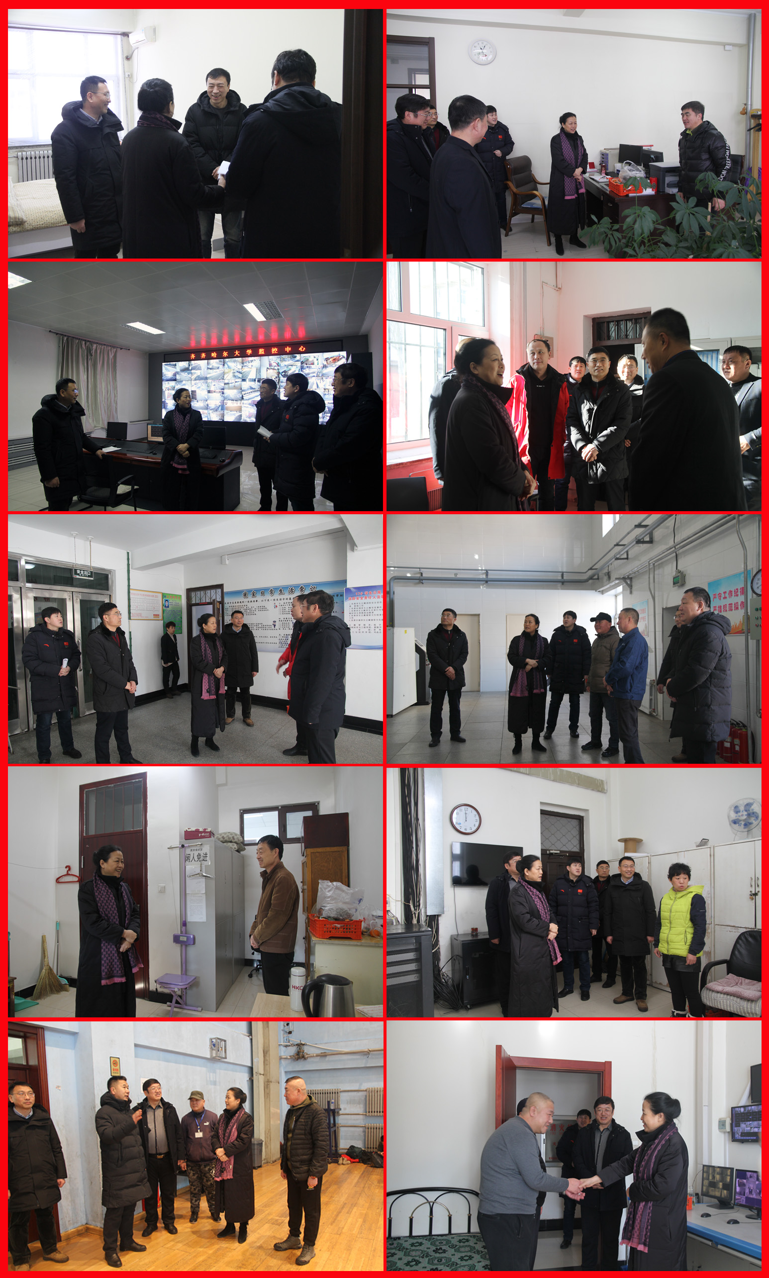 新春佳節(jié)送祝福,真情關(guān)懷暖人心。1月22日,農(nóng)歷臘月二十八,2020年春節(jié)臨近。校黨委書記、校長(zhǎng)陳桂芝帶領(lǐng)校黨委副書記張文治,校黨委常委、工會(huì)主席陶佰睿和相關(guān)職能部門負(fù)責(zé)人,深入一線慰問(wèn)春節(jié)假期值班人員,代表學(xué)校向他們送上節(jié)日的問(wèn)候與誠(chéng)摯的祝福。