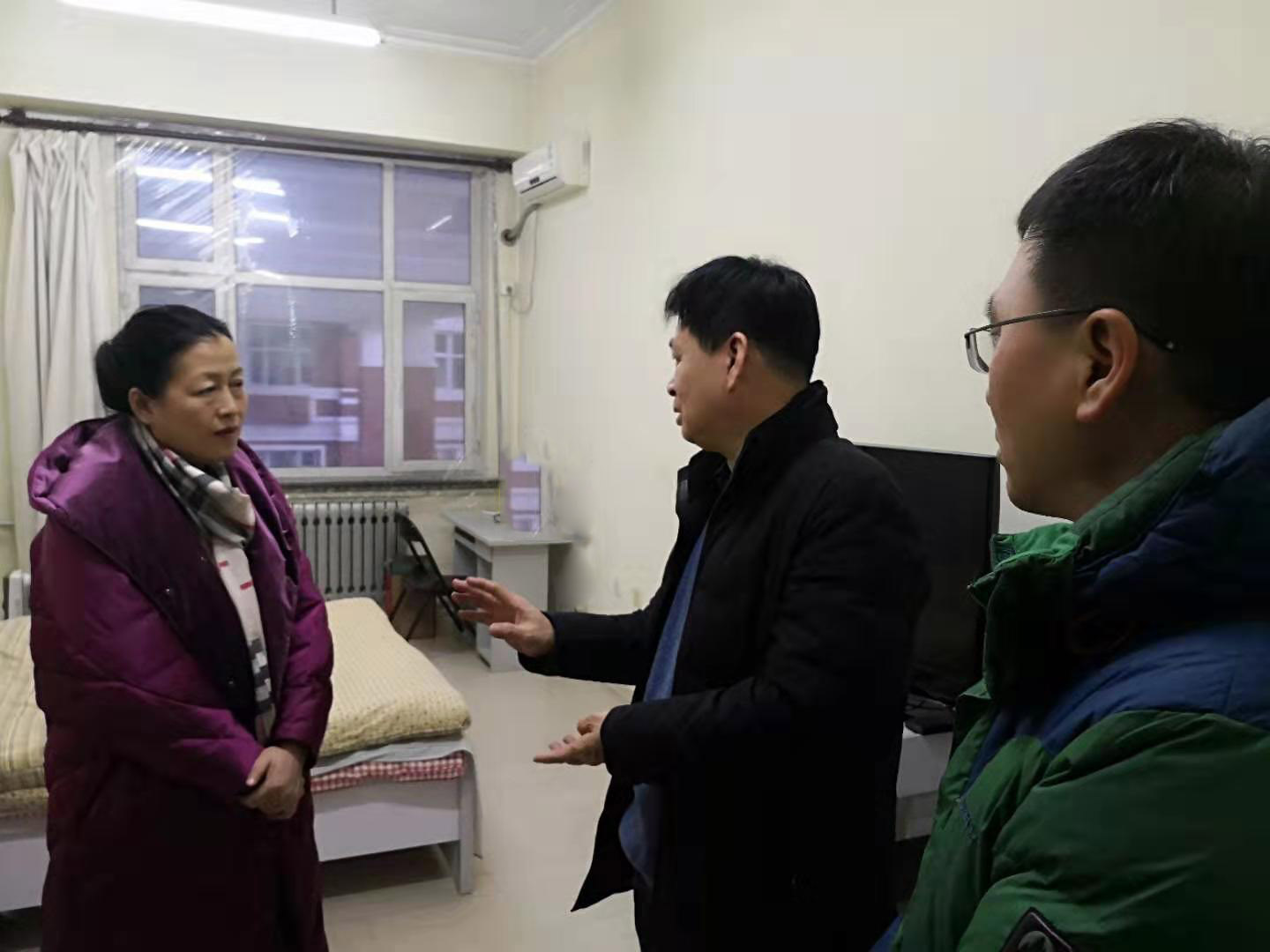 下午5點(diǎn),校黨委書(shū)記、校長(zhǎng)陳桂芝、工會(huì)主席陶佰睿和部分防控工作領(lǐng)導(dǎo)小組成員走訪校園110服務(wù)中心、學(xué)??傊蛋嗍摇⒇?cái)務(wù)處、中區(qū)變電所、中區(qū)鍋爐房、校衛(wèi)生所等地,看望慰問(wèn)在除夕堅(jiān)守崗位的一線員工并送上慰問(wèn)品,詳細(xì)了解了學(xué)校節(jié)假日期間學(xué)校重要崗位人員值班值守情況,并對(duì)新型冠狀病毒感染肺炎疫情防控工作落實(shí)情況進(jìn)行了檢查和指導(dǎo),特別是重點(diǎn)察看了發(fā)熱門(mén)診和隔離宿舍等重點(diǎn)部位以及紅外測(cè)溫儀、消毒藥品和醫(yī)務(wù)人員防護(hù)裝備等重要設(shè)施的部署落實(shí)情況。她代表學(xué)校黨委感謝大家為保障學(xué)校春節(jié)期間正常運(yùn)轉(zhuǎn)的辛勤付出,鼓勵(lì)全體值班人員一定發(fā)揚(yáng)同舟共濟(jì)的精神,堅(jiān)守崗位,加強(qiáng)應(yīng)急值守,全力做好保障工作,確保學(xué)校安全工作和各項(xiàng)疫情防控措施有效落實(shí),全力保障學(xué)校安全和師生健康。
