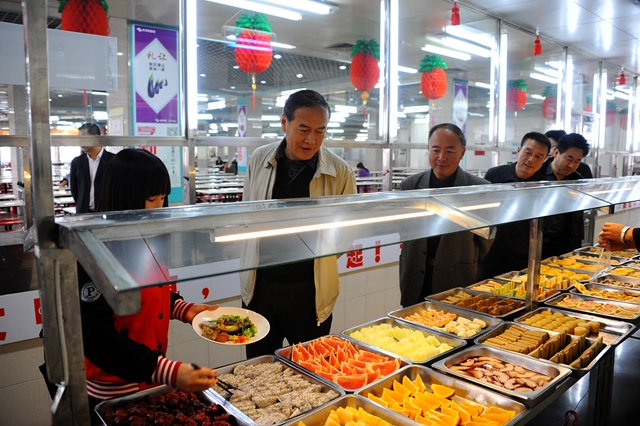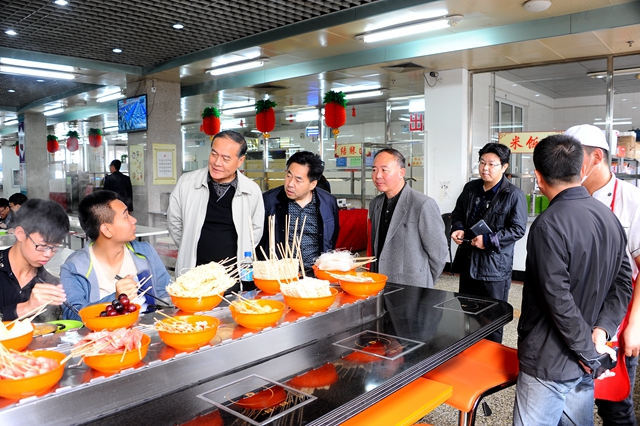 王剛副校長(zhǎng)一行還深入到伙食科、中區(qū)食堂等餐飲場(chǎng)所,檢查指導(dǎo)假日期間餐飲保障和后勤安全工作。為切實(shí)服務(wù)好假期在校師生就餐,后勤處科學(xué)統(tǒng)籌,合理安排各校區(qū)食堂開放時(shí)間,努力為師生提供優(yōu)質(zhì)的餐飲服務(wù),讓師生滿意,讓家長(zhǎng)放心。