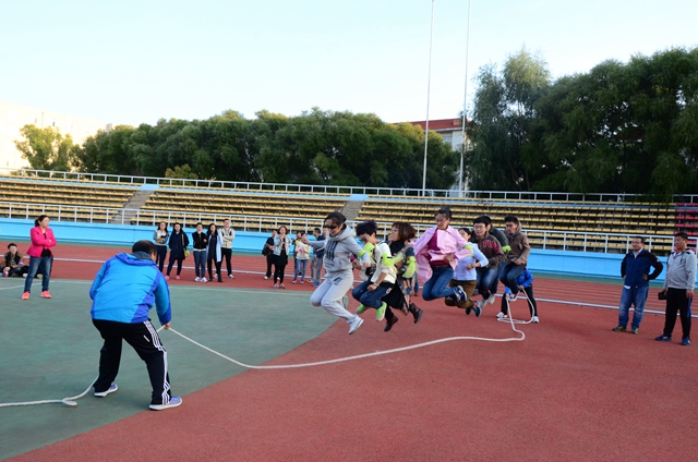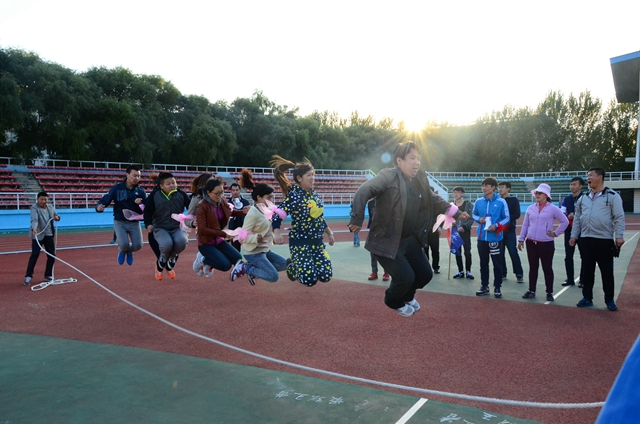 輔導員趣味運動會上,我校學工干部、輔導員運動會按照校區(qū)分為四個隊,共進行了“企鵝漫步”、“同舟共濟”、“齊頭并進”、“抱抱團”、“躍然心跳(跳大繩)”等五個項目的比拼,最終西區(qū)學院(包括校團委)的“橙隊”獲總成績第一名。