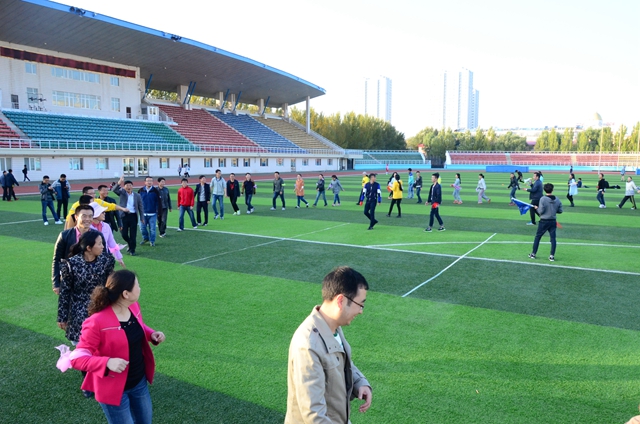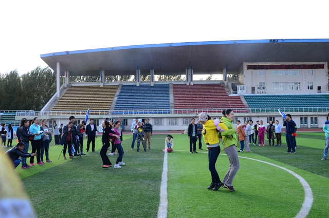 為慶祝國慶節(jié),增強輔導員身體素質,豐富輔導員業(yè)余生活,我校輔導員協(xié)會于2015年新輔導員入職宣誓儀式后在西區(qū)體育場舉辦了輔導員趣味運動會。