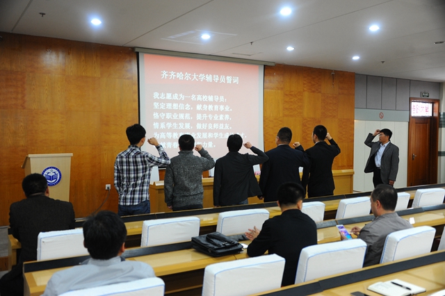 9月30日下午,我校2015年新輔導員入職宣誓儀式在西主七樓學術報告廳召開。
