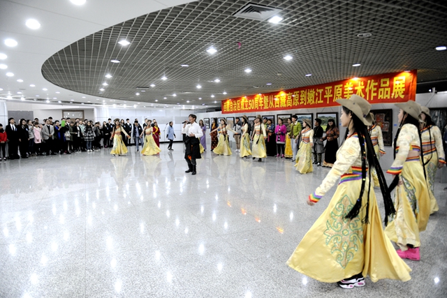 慶祝西藏自治區(qū)成立50周年暨從西藏高原到嫩江平原美術(shù)作品展覽在齊大美術(shù)館開幕