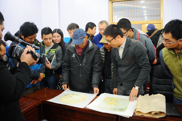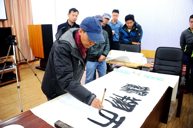 座談會(huì)上,韓書(shū)力先生現(xiàn)場(chǎng)指導(dǎo)了我校中青年教師的繪畫(huà)作品,并應(yīng)邀欣然題字《鶴翔天》。