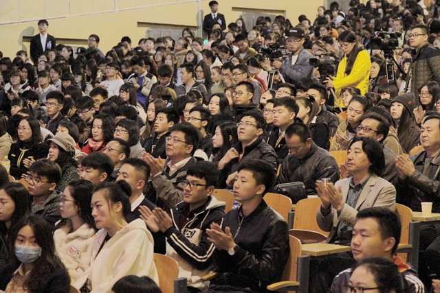 來(lái)自我校有關(guān)部門(mén)及美術(shù)與藝術(shù)設(shè)計(jì)學(xué)院、音樂(lè)與舞蹈學(xué)學(xué)院的領(lǐng)導(dǎo)、老師等與千余名師生認(rèn)真聆聽(tīng)了講座。講座由我校美術(shù)與藝術(shù)設(shè)計(jì)學(xué)院院長(zhǎng)馬振慶教授主持。