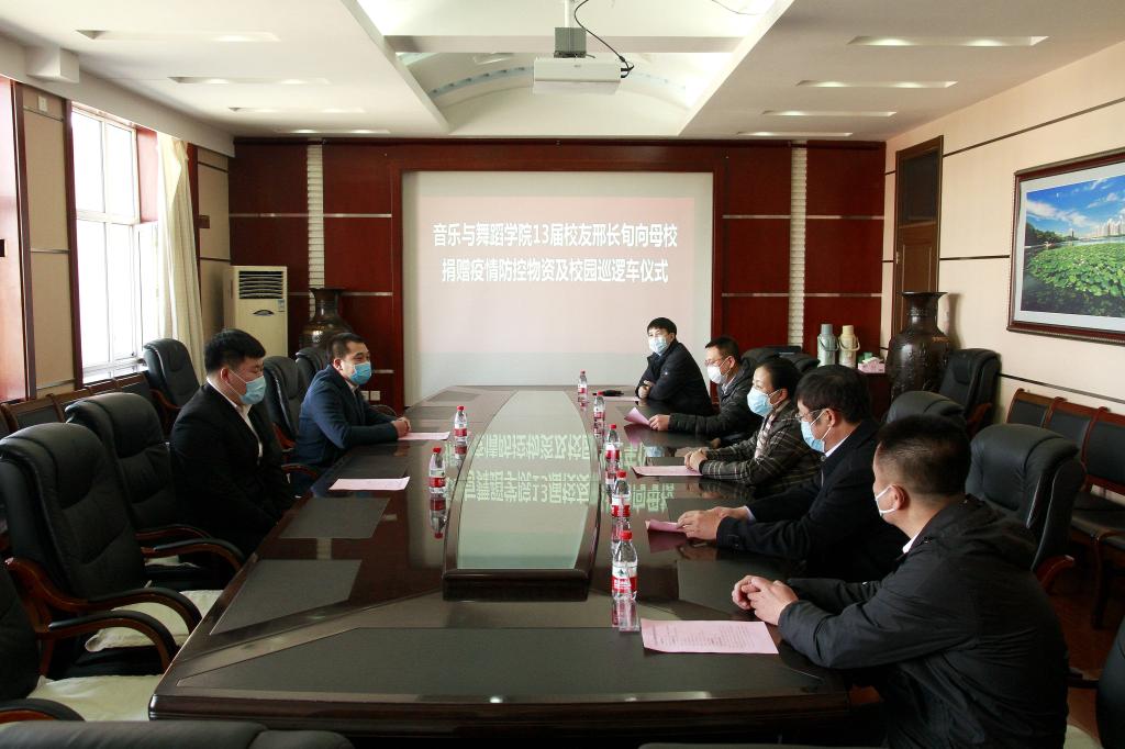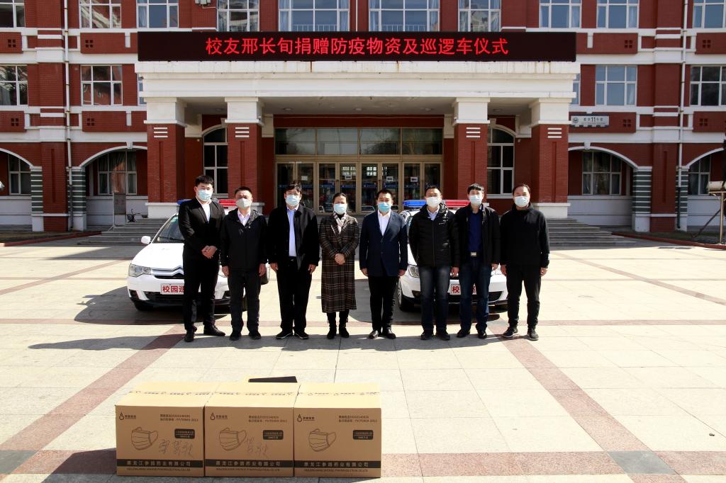 師恩難忘,母校情深。3月30日上午,我校音樂與舞蹈學(xué)院2013屆畢業(yè)生、齊齊哈爾市安通駕校、宏遠(yuǎn)駕校、依安縣恒信駕校校長、大學(xué)生創(chuàng)業(yè)園蓋世杰創(chuàng)客咖啡屋經(jīng)理邢長旬,校長助理何健一行2人來到我校,向?qū)W校捐贈了校園巡邏車2臺、醫(yī)用口罩5000只。學(xué)校在辦公樓504會議室舉行捐贈儀式,校黨委書記、校長陳桂芝,校黨委副書記張文治,校工會主席陶佰睿出席儀式,武裝部(保衛(wèi)處)、校團(tuán)委負(fù)責(zé)人參加了捐贈儀式,儀式由陳桂芝主持。