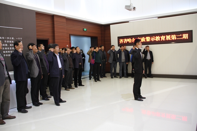 在校的校領導蓋元臣、鄧啟剛、王剛、李英杰、李敏義,黨委常委、組織部長齊宏偉等校領導、正處級干部、紀委委員及部分副處級干部參加了廉潔教育和警示教育活動,接受反腐倡廉教育。