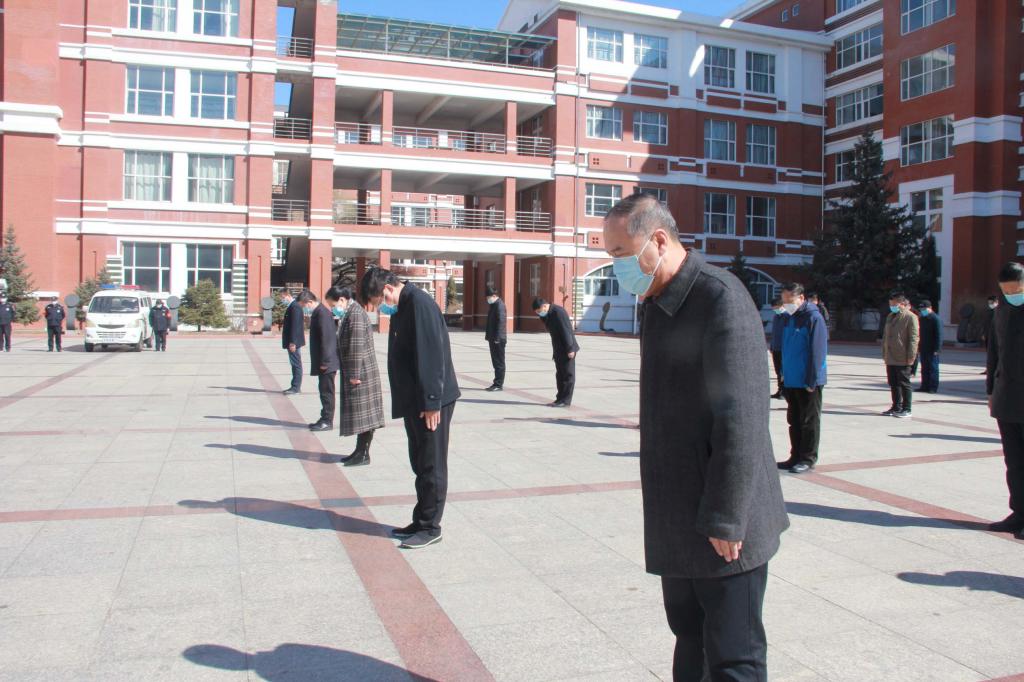 為深切表達(dá)全校師生對(duì)抗擊新冠肺炎疫情斗爭(zhēng)犧牲烈士和逝世同胞的深切哀悼,4月4日上午10時(shí),我校在中區(qū)廣場(chǎng)舉行了哀悼活動(dòng),校黨委書(shū)記、校長(zhǎng)陳桂芝、校黨委副書(shū)記張文治、副校長(zhǎng)王剛、副校長(zhǎng)李英杰、工會(huì)主席陶佰睿及工作人員等來(lái)到中區(qū)廣場(chǎng),集體向新冠肺炎疫情犧牲烈士和逝世同胞默哀。