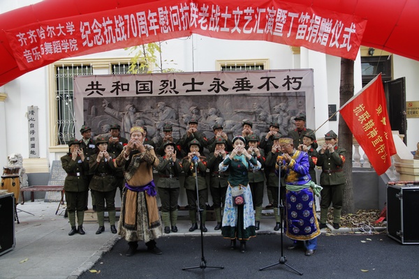 李敏說,熱烈歡迎并非常感謝齊齊哈爾大學的師生來到這里演出,這個活動非常有意義。我們永遠不能忘記抗戰(zhàn)時期日本侵略者對中國人民的殘忍迫害,永遠不能忘記那些為了抗戰(zhàn)勝利而犧牲的先烈們!我們要牢記勝利來之不易,今天的幸福生活應該好好珍惜,偉大的抗日精神、抗聯(lián)精神要廣泛宣傳、永遠傳承下去。