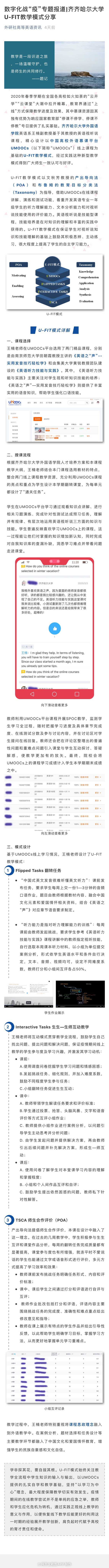 編者按:5月15日,外研社高等英語資訊公眾號在其“數(shù)字化戰(zhàn)‘疫’”專題中分享了“齊齊哈爾大學U-FIT教學模式”,深入報道我校外國語學院青年教師王楠戰(zhàn)“疫”期間在線教學新模式。外研社高等英語資訊公眾號由外語教學與研究出版社創(chuàng)辦,旨在傳播行業(yè)資訊,探索前沿理念,促進學生成長,推動教學發(fā)展。3月初以來,外研社啟動“數(shù)字化戰(zhàn)‘疫’”專題報道,選取國內高校英語專業(yè)優(yōu)秀教學案例進行推薦、分享。我校教師王楠的教學模式被選中推薦后,迅速獲得了同行們的肯定和稱贊。