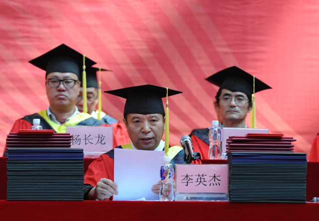 校黨委常委、副校長、校學(xué)位評定委員會副主任李英杰宣讀齊齊哈爾大學(xué)《關(guān)于準(zhǔn)予研究生,留學(xué)生,本科學(xué)生畢業(yè)的決定》。