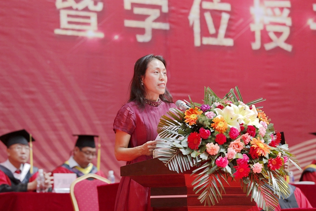 馬立群校長動情地回憶了同學(xué)們共度的美好大學(xué)時光。他說,你們在美麗的環(huán)湖大學(xué)度過了寶貴的青春年華,從入學(xué)時的稚嫩到畢業(yè)季的成熟;你們用優(yōu)異的表現(xiàn)踐行了青春的誓言,為美麗的校園平添了生機(jī)與活力,留下了無數(shù)的精彩時刻,無愧于齊齊哈爾大學(xué)校友的稱號。對于有特色高水平教學(xué)研究型綜合大學(xué)的美好向往,就是我們?nèi)w齊大人的精神紐帶和奮斗目標(biāo)。你們始終與學(xué)校相守相攜、共同成長,留下的記憶彌足珍貴。未來,會讓大家看到更大的改變和希望!我們共同努力,相信一定會把母校建設(shè)得更加美好!