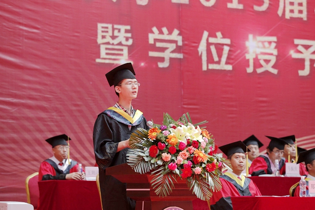 本科畢業(yè)生代表、校學(xué)生會主席、校優(yōu)秀畢業(yè)生李成同學(xué)發(fā)言
